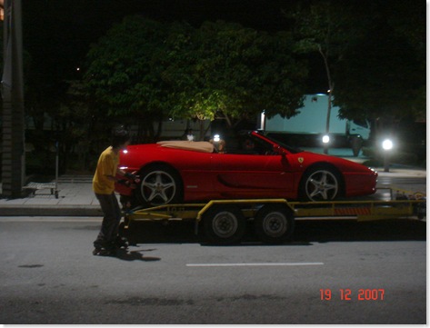 Kidding, this is just a equipment for a movie shooting group at Putrajaya yesterday night, while I skated with friends and members from Skateline. It's a Ferrari! But I not sure whether it's just a casing or a real car...